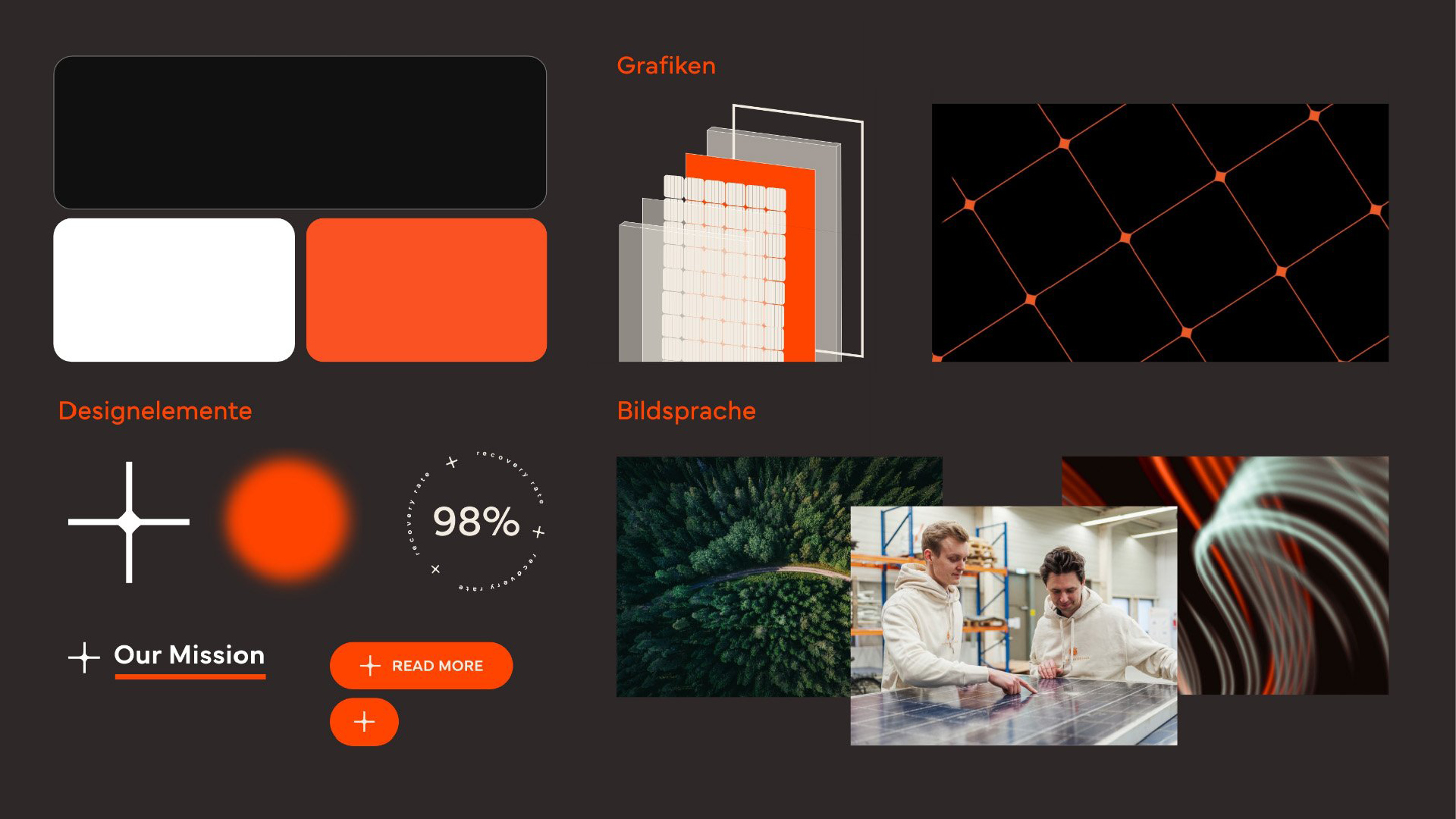 Ausgehend von der gemeinsam entwickelten Markenidentität, den Werten und der Haltung des Unternehmens, haben wir die Marke progressiv interpretiert – visuell, sprachlich und strategisch. Das Ergebnis: ein zukunftsweisendes Designsystem, das die technologische Führungsrolle von Solar Materials ebenso transportiert wie ihre Mission für eine grüne Energiewende.